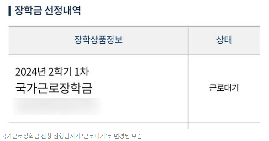 이렇게 온라인 신청을 마치면, 각 대학에서 수립한 자체운영기준에 의거하여 장학생을 선발하게 됩니다. 국가근로장학금 신청 진행단계가 ‘근로대기’로 변경되면 선발기준 심사를 통과한 것이며, 근로기관 배정으로 이어집니다. 근로기관 배정이 완료되면 국가근로장학생으로 최종 선발되며, 사이버 오리엔테이션을 이수한 후 배정된 근로기관 확인 및 출근부 입력 과정을 통해 근로를 진행하게 됩니다.