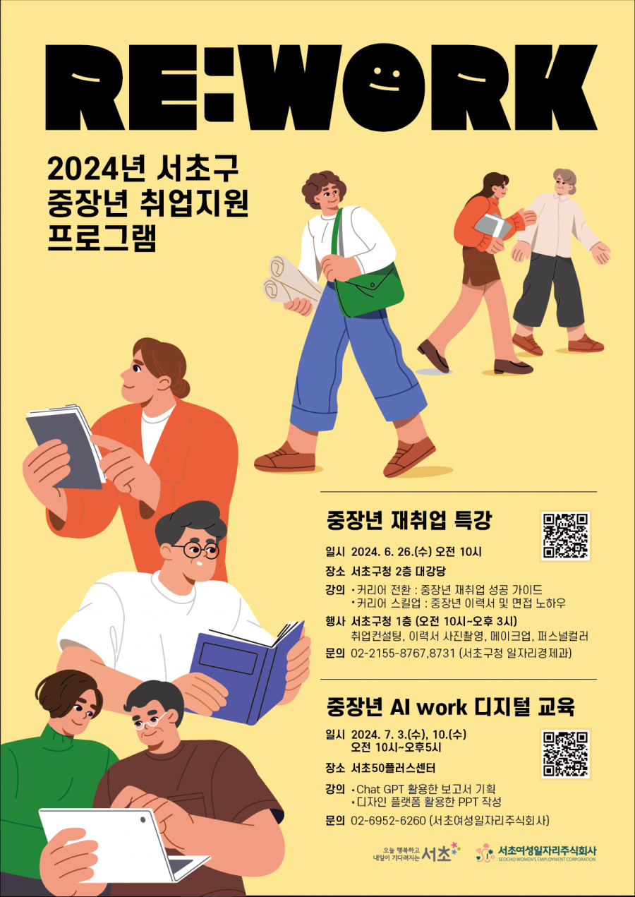 - 재취업 지원 : 퇴직 예정자나 퇴직 후 재취업을 원하는 중장년층을 위한 맞춤형 지원 프로그램을 운영합니다.
